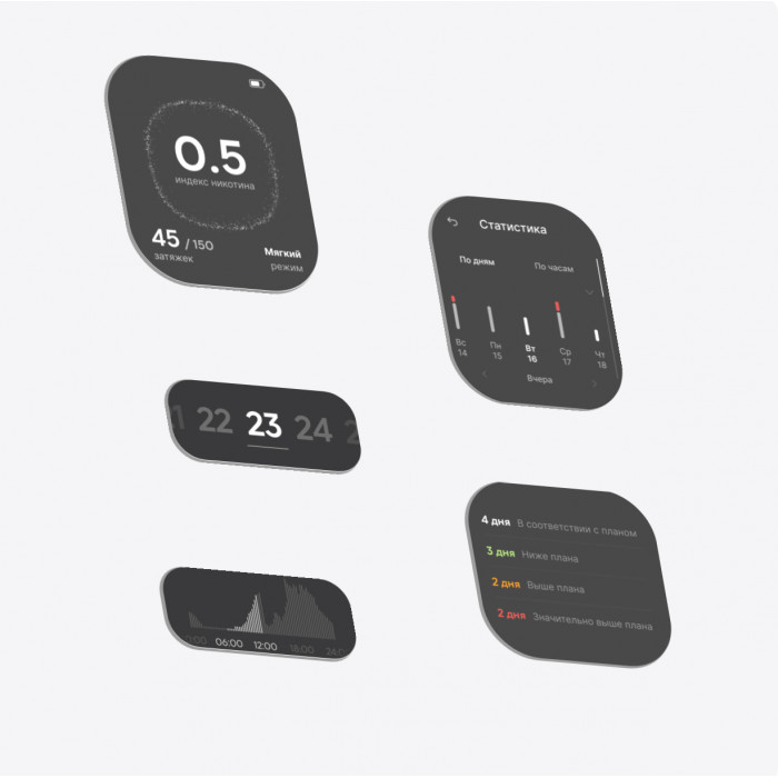 Отслеживайте статистику — Смотрите статистику по количеству и времени затяжек как на экране устройства, так и в мобильном приложении.